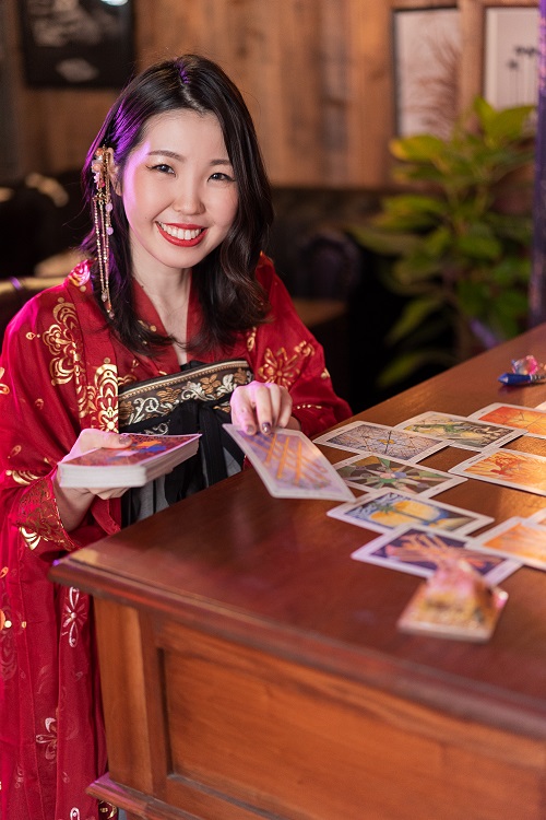 恋愛や結婚の相性、友人、職場の人間関係などを占うタロットカードを媒介にして、占い師が見えない世界と繋がり、近未来を透視します。